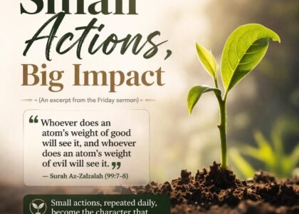 Friday KhutbahSmall Actions, Big Impact Apr 10, 2026 naseehafoundationComment on Small Actions, Big Impact An excerpt from the Friday sermon, —Habib Nooh My dear brothers and sisters in Islam,